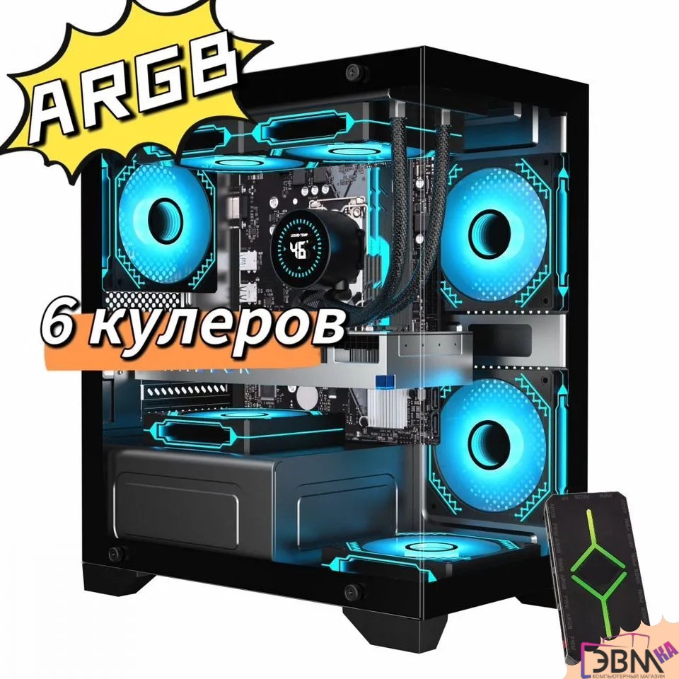 Игровой корпус для пк черный с 6 шт кулеров argb